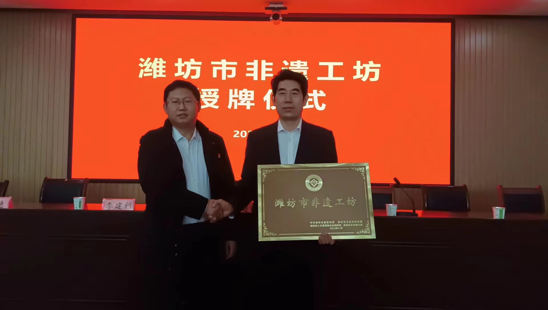 【潍坊市非遗工坊授牌仪式】市委宣传部副部长、市文旅局李建利局长为金铠甲膏药传承人颁发荣誉奖牌,领导的鼓励也是我们前进的动力!